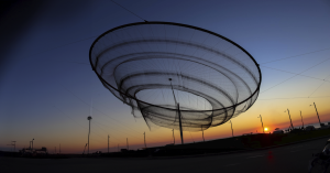 Criada pela escultora americana Janet Echelman, esta intrigante escultura é composta por três grandes postes de aço, um elevando-se a cerca de 60 metros, associado a uma rede vermelha e branca (suspendida dentro de um anel de 42 metros de diâmetro), que dança graciosamente ao ritmo do vento.